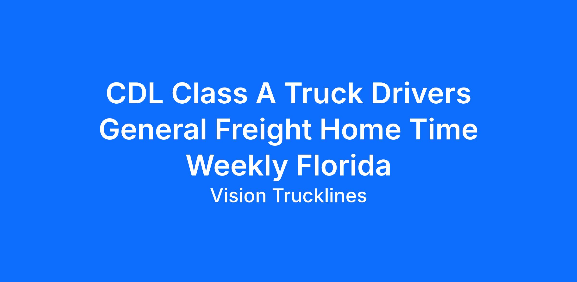 CDL Class A Truck Drivers General Freight Home Time Weekly Florida