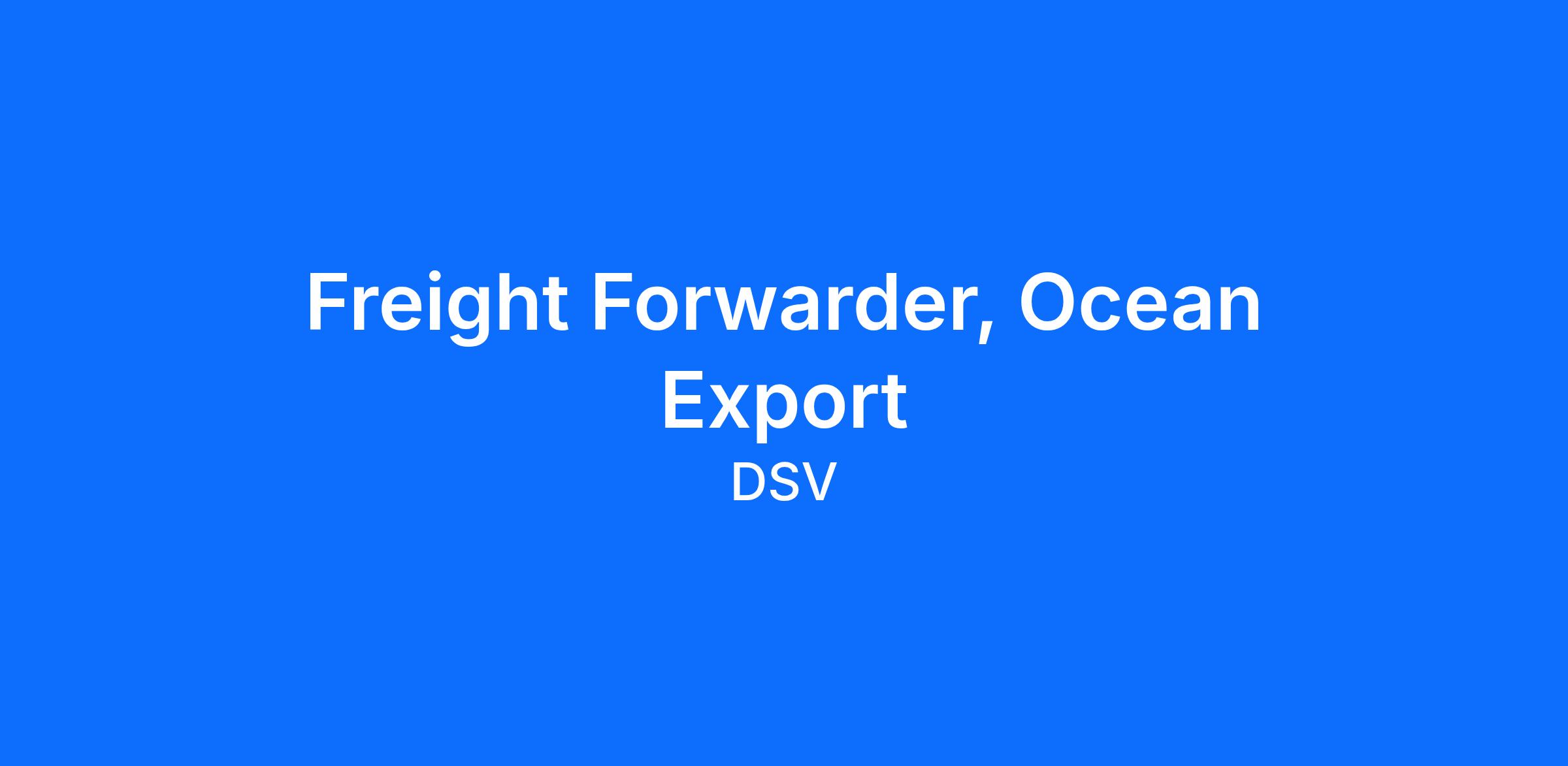 Job Posting Title: Freight Forwarder, Ocean Export