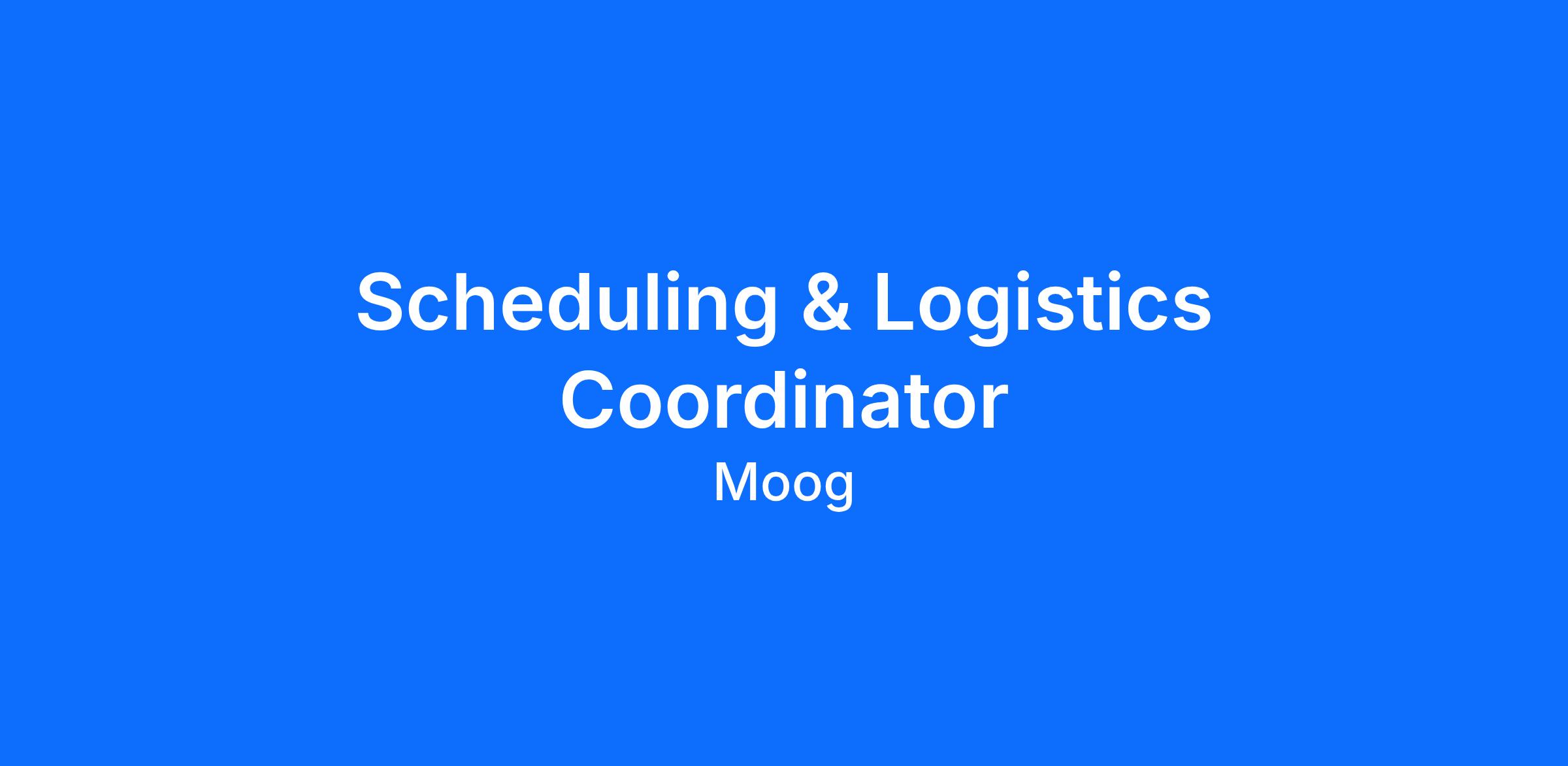 Onsite – Buffalo, NYMoog in East Aurora, NY is hiring a Scheduling & Logistics Coordinator to support our new Operations Training Center!