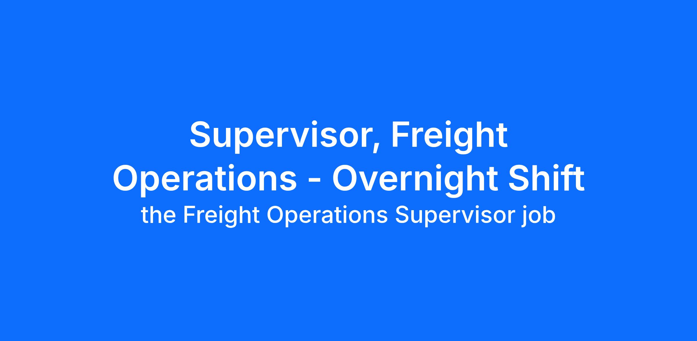 About the Freight Operations Supervisor job